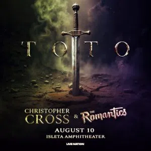 Coyote 102.5 and Live Nation welcome…TOTO + Christopher Cross + The Romantics! August 10th at Isleta Amphitheater! This will be an epic night of hits, that you won’t want to miss! Tickets go on sale Friday December 12th, 10 AM, at Ticketmaster! Keep your ears on Coyote 102.5, and you could win tickets!